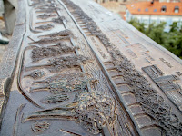 A catedral, tal como o castelo, só os visitei pelo exterior. Para visitar o interior da Catedral pagava-se sete euros e achei que era muito dinheiro, apesar de provavelmente, ter sido uma oportunidade única. Não sabemos. Só conheci a parte possível visitar pela entrada principal. Para o acesso ao castelo também se pagava e fiquei pela entrada, regressando ao miradouro. Aqui a estrela com os pontos cardeais indica-nos, cada um deles, as diversas distâncias a quatro pontos diferentes do globo, sendo que Lisboa a SO (Sueste) está a 620 km.
